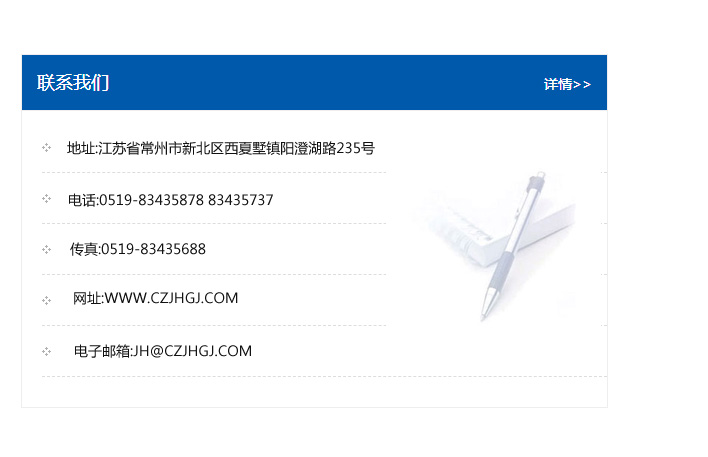 地址:常州市新北區友邦商務大廈1幢16、17層  電話:0519-85101652  傳真:0519-85112595  郵編:213022  網址:www.cz-jiayue_cn.fhqcpj.com  郵箱:xiajifengaa@163.com